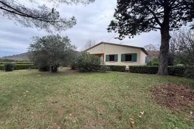 Village with shops nearby - Located on the main road, this 1980s house offers approximately 120m² of living space plus a large garage and cellar on a 3750m² fenced and wooded plot, with possible pool/annex or extension potential.