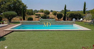 Maison Dumon presents for sale: In the heart of a peaceful and desirable location, 3 km from the village center of Roussillon, a beautiful, recently built house of 220 sq m of living space, set on a 2750 sq m garden with a swimming pool and views. The house comprises: a spacious and bright living area with an open-plan fitted kitchen, a dining room, and a lounge area with a fireplace. A utility room/laundry room, a guest toilet, and a master suite with its own shower room. Upstairs, there are three bedrooms, one with its own shower room and two others sharing a bathroom with a shower and bathtub, and a separate toilet. Outside, there is a beautiful enclosed and landscaped garden of approximately 2720 m2, with a swimming pool, a stone pool house and a lovely view of the surrounding countryside. A garage completes the property. Comfort and Amenities: recent house built in 2019 - beautiful volumes, double-glazed windows - quiet environment - views - garage - swimming pool.
