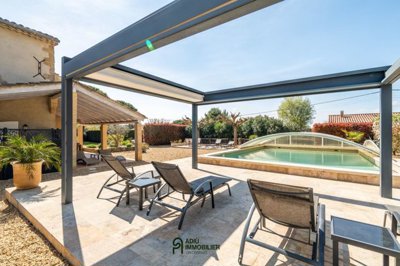 In the immediate vicinity of Uzès, this carefully renovated farmhouse combines charm and modern comfort in a peaceful and perfectly maintained setting. The property, organized in two distinct spaces, offers great flexibility according to your needs or projects.