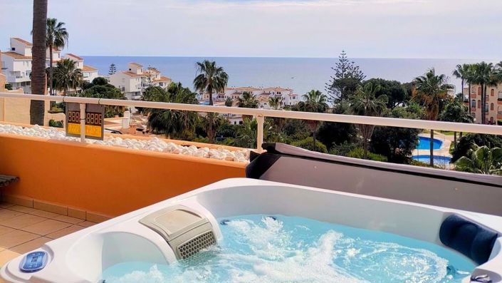 Located just a short walk from the beach via a private pedestrian tunnel, Malibu Mansions offers both tranquility and convenience. The communitys elevated position ensures privacy and exceptional views, while still being minutes from La Cala de Mijas, Fuengirola, and Marbella. Residents also enjoy access to a beautiful communal pool surrounded by landscaped gardens, creating a resort-like environment perfect for year-round enjoyment.