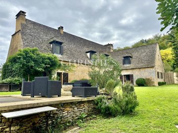 This property could only be described as a little 'bijou'. Built in 1731, and situated just outside Sarlat in the Dordogne, in a quiet hamlet surrounded by woodland, with it’s traditional stone lauze roofs and built in the local honey coloured limestone the main house offers 3 bedrooms and the guest house sleeps 4. The site formally housed a retreat for the bishop of Sarlat. Here you can live the dream in a haven of peace, surrounded by pretty gardens and nature, yet within 10 minutes of the charming bustling town of Sarlat, and 10 minutes from the charming village of Saint Cyprien with its renowned bustling Sunday market.