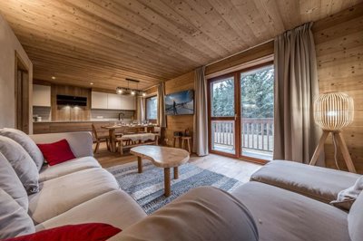 Located in a highly sought-after ski-in/ski-out residence, this spacious, fully renovated corner apartment boasts generous living areas. It comprises a bright, dual-aspect living room, sleeps 8, and offers ample storage. You'll also appreciate its tranquility and panoramic mountain views. Enjoy afternoon sunshine thanks to the west-facing balcony. The apartment is sold with a cellar and a ski locker. Energy Performance Certificate: F