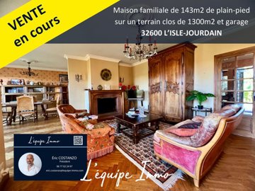 A stone's throw from the town center and all amenities on foot, come and discover this family home of approximately 143m2 of living space on one level, built in the 1970s, on a fully enclosed plot of 1320m2. You have a spacious entrance hall, a separate kitchen and a pantry, a large living room opening onto the garden, a first bedroom with a separate toilet. The hallway leads to 3 other bedrooms, one of which has a shower room, a separate bathroom and a second toilet. An adjoining and communicating garage of 25m2 as well as a practical cellar for storage. Renovation work is to be expected. A functional house, perfect for welcoming a family and customizable according to your wishes!
