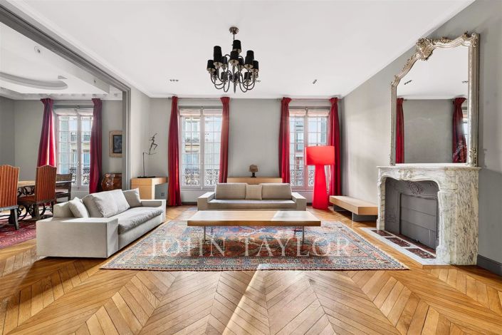 With 3.23-meter (10.6 ft) ceilings, the apartment benefits from impressive volumes and an exceptional sense of space.