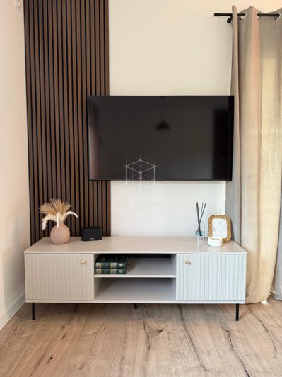 The house boasts modern architecture and features an open-plan living room connected to the kitchen, with direct access to a covered terrace overlooking your private pool and the surrounding woodland. There is also an entrance hallway that separates the living area from the sleeping quarters, which include two bedrooms. The property also offers a bathroom, a guest toilet, and a laundry room.