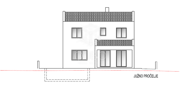 A final building permit has been issued for the construction of a modern family house of 120 m² with a private swimming pool, and the complete project documentation is included in the sale.