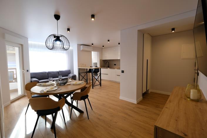 Stylish, fully renovated apartment in a modern design for sale in one of the most sought-after areas of Torrevieja — Las Piscinas Naturales. Only 100 meters from the promenade and the sea. The 102 m² apartment is located on the 3rd floor of a well-maintained building constructed in 1980. A new modern elevator is currently being installed in the building. The layout includes 3 bedrooms (two facing the street and one overlooking an internal patio), a bright living room, a fully renovated kitchen, a modern bathroom, and a private 5 m² solarium. Air conditioning (hot/cold) is installed. Due to the absence of a pool and garage, maintenance costs are very low: IBI tax — €340 per year, community fees — €400 per year. The building is located just steps from the sea, beaches, and promenade. All city infrastructure such as restaurants, shops, and pharmacies is within walking distance. The apartment is move-in ready and ideal both for living and rental investment.