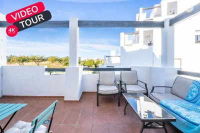 Two double bedroomsBoth bedrooms have fitted wardrobesFully fitted kitchen with a breakfast barUpgraded bathroom with a walk in showerLiving room that has sliding glass doors to the terraceThe terrace has stunning views of the golf course and communal poolAir conditioningCommunal pool24 hour securityWest FacingLas Terrazas de la Torre resort features 8 communal swimming pools, a championship golf course and pro shop, bar and restaurant with live music, burger food truck and a Spar supermarket.The resort itself is fantastically well located, within a 20 minute drive you will reach the coast and its beautiful beaches, as well as the cities of Cartagena and Murcia, and you will also find several major shopping centres. It is also only 15 minutes away from Murcia International Airport.