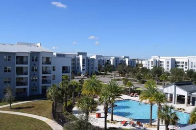 The top-floor location offers added privacy with no upstairs neighbors, while the pool view enhances both guest experience and rental appeal. The layout allows the property to accommodate groups similarly to some three-bedroom configurations, making it highly attractive as a short-term vacation rental investment.