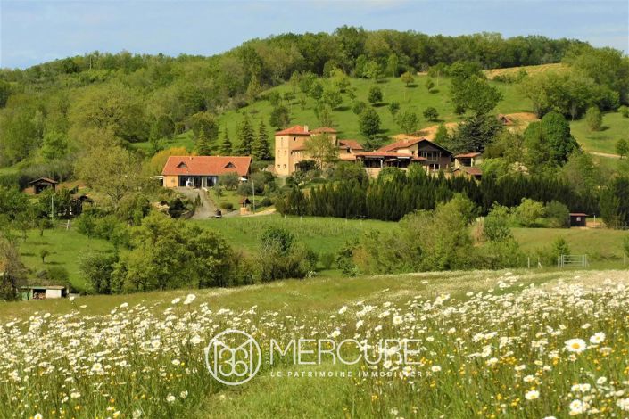 With breathtaking views of the Pyrenees mountains and no nuisance, this beautiful estate comprises three bright renovated houses and three chalets. It faces south/west and is set on 33 hectares of land with a lake and woods.
