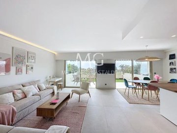 The apartment is composed of a fully equipped kitchen, a living room/living room opening onto the 35m2 south-facing terrace/garden, 2 bedrooms with dressing rooms with access to a second 5m2 terrace, and 2 bathrooms bathrooms.