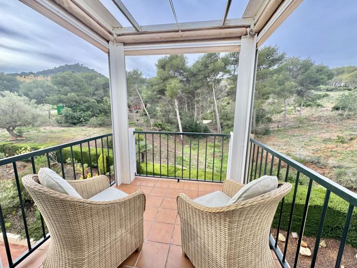 The living room leads to an enclosed terrace, creating a versatile additional space that can be enjoyed year-round.