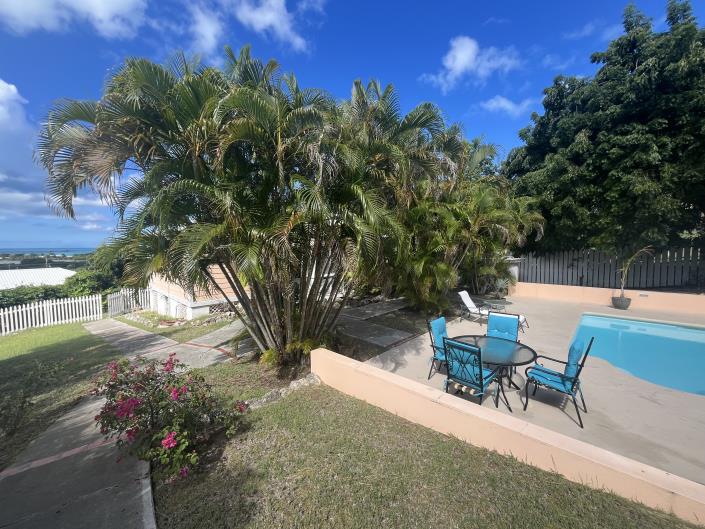 Designed for comfort and indoor-outdoor living, the home features both front and rear screened verandahs—perfect for enjoying cooling trade winds, morning coffee, or sunset cocktails. The open layout flows seamlessly to the outdoor pool and sun deck, creating an ideal space for entertaining or unwinding in privacy.