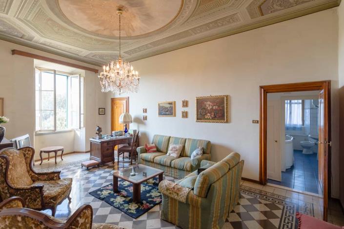 Appartamento del Cinema", an exclusive property located in the heart of Cortona, in Via Nazionale. With over 230 square meters of surface area, the apartment offers large and functional spaces, enriched by period details that tell the history of the city. The large panoramic terrace of about 30 square meters offers a splendid view of the city and the Valdichiana, ideal for moments of relaxation or outdoor entertainment.