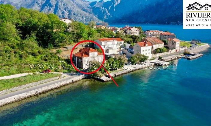 An authentic stone house for renovation is for sale, located in the first row by the sea in the settlement of Prcanj, Municipality of Kotor.