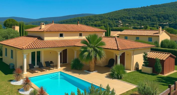 Aups close to the centre very Nice and attractive 3 bedrooms villa with pool. Large living room with superb équipée kitchen. Cellar. Mezzanine office. Very nice garden with pool and large garage. In a quiet and residential area for this T4 house for sale in Provence.