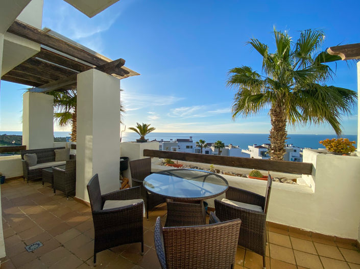 The apartment boasts a total built area of 130 square meters, offering generous living spaces designed with a blend of modern style and Mediterranean charm. Fully furnished and equipped with top-quality appliances, this home is ready to move in and provides a hassle-free lifestyle. The heart of the property is its impressive terrace, a private outdoor oasis where you can enjoy the warm Andalusian climate, relax with family and friends, and admire the uninterrupted views of the Mediterranean Sea and the surrounding natural landscape. The terrace is complemented by a dedicated dining area, a luxurious whirlpool bath with hydromassage and lighting for ultimate relaxation, an outdoor shower, and a private garden that enhances the sense of space and tranquility.