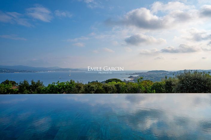 In a sought-after private estate, this new contemporary villa of approximately 500 sqm offers a unique living environment facing the bay of Saint-Tropez. Its modern design plays with light and volume, offering spaces open to the outdoors thanks to large bay windows and vast terraces. The house is composed as follows: On the main level: 1 master bedroom with large dressing room and bathroom. 3 other en-suite bedrooms on this level. Bar area opened by sliding bay windows, with a panoramic view of the sea. On the garden level: Several reception areas bathed in light with access to the terrace and shaded living areas. Equipped kitchen, with pantry and cold room. A 5th en-suite bedroom. An apartment with independent access including a bedroom and a kitchen completes this ensemble. Designed for well-being, the property has a gym, a sauna and a landscaped garden of 2,500 sqm. The heated infinity pool blends seamlessly into this exclusive setting, offering exceptional views at any time of day. Just minutes from the center of Saint-Tropez and the beaches, this villa combines elegance, modernity, and high-end amenities in a privileged setting.