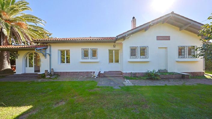 In the Parc d'Hiver/Aguilera area, on a wooded plot of nearly 1,200 sqm, this charming single-story house from the 1950s-60s offers approximately 160 sqm of living space, complemented by a 20 sqm outbuilding and a 26 sqm garage. Built on an L-shaped plan, it opens generously to the south and benefits from abundant natural light. The architectural features of its era, notably the arched windows and monumental marble fireplaces, give this house a unique character that will appeal to those with a project in mind. Significant renovation potential allows for the creation of an elegant family home, a refined pied-à-terre, or a second residence surrounded by nature, all while remaining within easy reach of the center of Biarritz. The landscaped garden, secluded and offering absolute tranquility, provides a rare atmosphere, where palm trees and lush vegetation create a privileged living environment. A unique and rare property in the area, in the heart of the residential district of Parc d'Hiver.