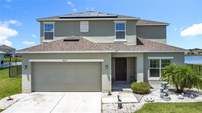 PRICE IMPROVEMENT. Welcome to this beautiful 2-story home in Stepping Stone, where you and your family will enjoy one of the best communities in Kissimmee. This home features 5 spacious bedrooms, 3 bathrooms, and a stunning lake view. This 5-year-new property is perfect for families, investors, or Disney enthusiasts. The first-floor features one bedroom, one bathroom, bonus/ flex room, living area, combined kitchen, and dining. On the second floor are the other four bedrooms, a small loft, laundry room, and two bathrooms. There is a community pool, playground, and walking trails. This home is in close proximity to Disney, shopping, and dining. It is a very peaceful and quiet place. You will feel like you are the only one living there because it's very quiet. This home has it all, plus beautiful views from both upstairs and downstairs of the lake. Home has a bonus- SOLAR PANELS. The only thing missing is YOU! What are you waiting for? Call for a showing today!!