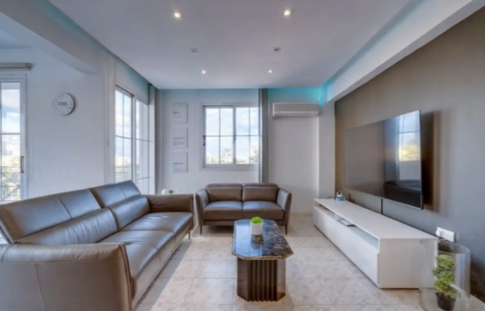 A spacious 3-bedroom penthouse located in the heart of Larnaca, Skala area, just a short walk from the famous Finikoudes Beach. This exceptional property offers beautiful sea views and is ideal for comfortable city living. The penthouse features a huge and bright living room, a separate large kitchen, and three well-sized bedrooms, including a master bedroom with an en-suite bathroom. Generous verandas provide plenty of outdoor space, perfect for relaxing or entertaining. The property also benefits from closed parking and is conveniently located next to schools and all essential amenities, making it an excellent choice for both permanent residence and investment.