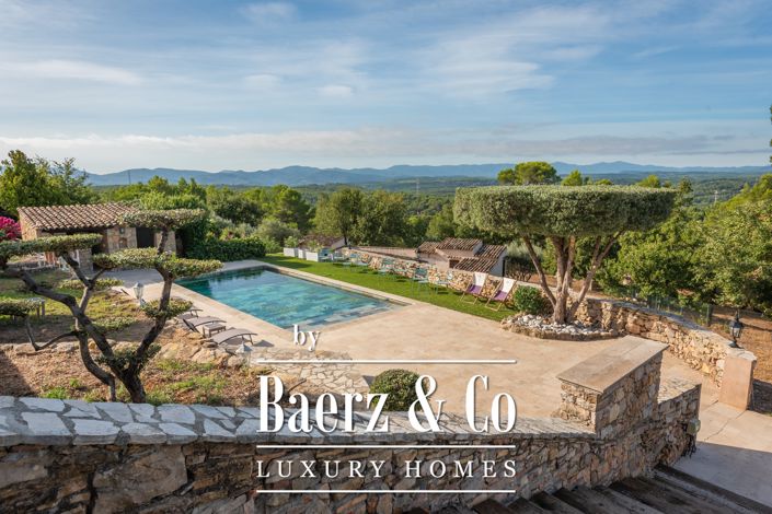 Baerz is pleased to offer for sale a rare hillside estate above Draguignan, enjoying a 180° panoramic view in a peaceful, natural setting. Set on nearly 12,000 sqm of land, the property comprises a 222 sqm main villa and an independent 41 sqm guesthouse/inn with its own access.