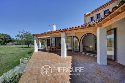 This elegant home, built in the 1980s, has recently been completely refurbished by an architect, adopting a contemporary aesthetic that harmoniously blends charm, elegance and comfort. Nestling just a short distance from the town centre, in the heart of a magnificent, flat, wooded plot of around 2,500 sqm, it offers an exceptional, privileged living environment.