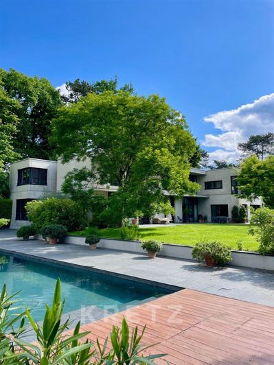 Exclusivity contemporary villa in raw concrete, designed by a Parisian architect, offering 930 m² on the ground (570 m² Carrez) on 3 levels, on a landscaped plot of 6,066 m² with automatic irrigation, robot lawn mower and vegetable garden.