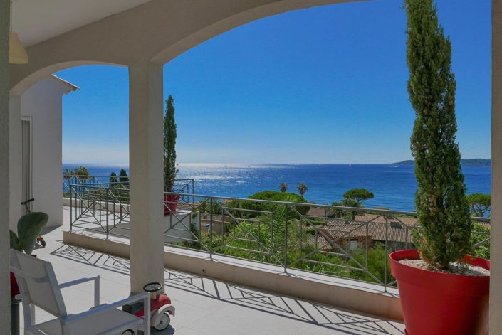 Renovated villa with stunning sea views over the Gulf of Saint-Tropez, with large pieces, walking distance from the beach and the center, contemporary fitting, heated pool, large corner plot.