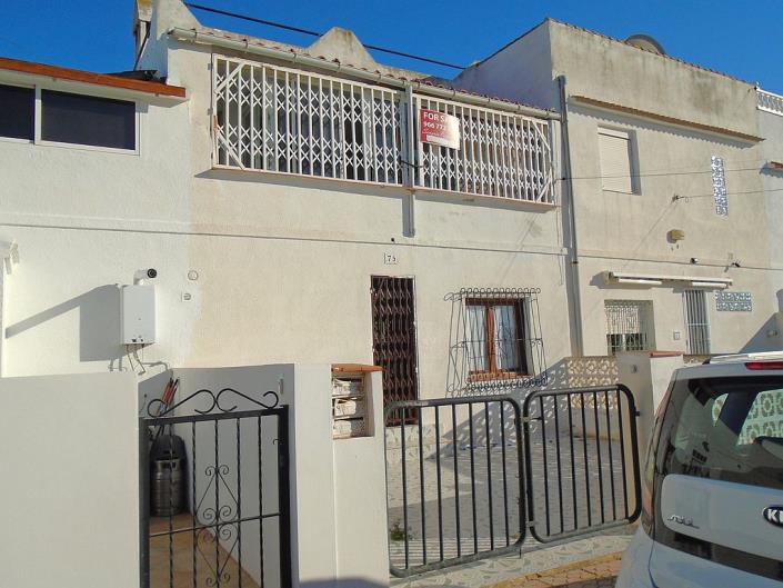 Large Townhouse in San Miguel de Salinas in need of modernisation. The property has 4 bedrooms, 2.5 bathrooms, 2 tiled terraces ( front and back ), an open plan kitchen, 2 lounges and a private solarium with lake and distant sea views. On the ground floor you have the kitchen, 2 bedrooms, main bathroom, a lounge and stairs leading to the upstairs living area. Here are the other 2 bedrooms, lounge, bathroom and toilet, terrace and stairs leading to the solarium.