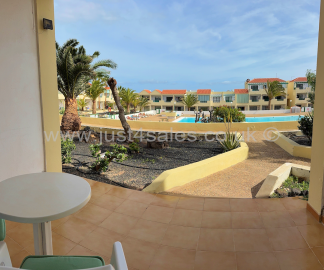 Attractive ground floor apartment comprising a double bedroom, a bright living area with open-plan kitchen, and a bathroom. Enjoy a lovely sunny terrace overlooking the communal swimming pool. Situated on a popular, well-maintained community, conveniently close to bars, restaurants, and local amenities.