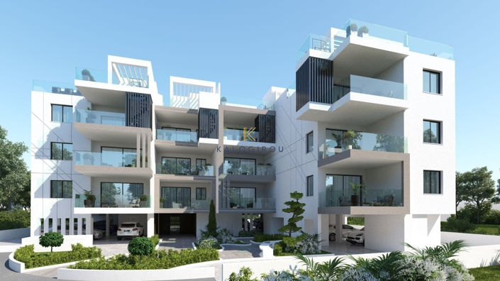 Apartment for Sale in Aradippou area, Larnaca. This beautiful apartment consists of an open plan kitchen and living room with dining area, two bedrooms, one common bathroom with wc and one en suite shower in the master bedroom. The apartment enjoys a private roof garden with sitting area and toilet. Also, the apartment has a storage room and covered parking space on the ground floor.
