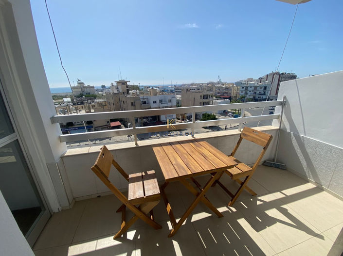Fully renovated apartment for sale in New Marina area, Larnaca Town. The property consists of 2 bedrooms, living room, separate kitchen, 1 shower, 1wc, kitchen appliances, fully furnished, a/c, covered veranda and sea view.