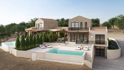 Set in one of the most privileged and rarely available locations in Kefalonia, these two exceptional off-plan luxury villas redefine privacy, elegance, and investment value. Positioned within a generous 4,681 sq.m. private land plot, the residences enjoy uninterrupted panoramic views of the Ionian Sea and Zakynthos, just minutes from the renowned Lourdas Beach.
