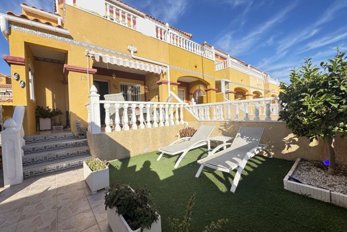 This charming semi detached 2 bedroom, 2 bathroom house is powered by solar energy, perfect for sustainable living. Enjoy the spacious Lshaped garden with front and rear terraces, ideal for alfresco dining and relaxation. Key Features: 2 bedrooms with a modern bathroom Solar power for eco friendly living Large Lshaped garden with terraces Located on the outskirts of a gated community with access to 2 communal pools Prime spot between La Zenia and Cabo Roig convenience and tranquility in one. A perfect blend of comfort, sustainability, and location. Get in touch for more details.