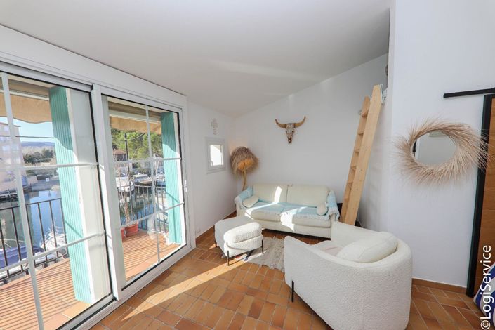 Located in a residential area, this bright, air-conditioned apartment boasts a lovely view. Situated on the second and top floor of a small building in the Lacustre district, it features a living room with an open-plan kitchen, a terrace with panoramic views of the canals, and a bedroom overlooking the rooftops of Port Grimaud. A 14 x 3.74 m mooring space and a numbered parking space are included.