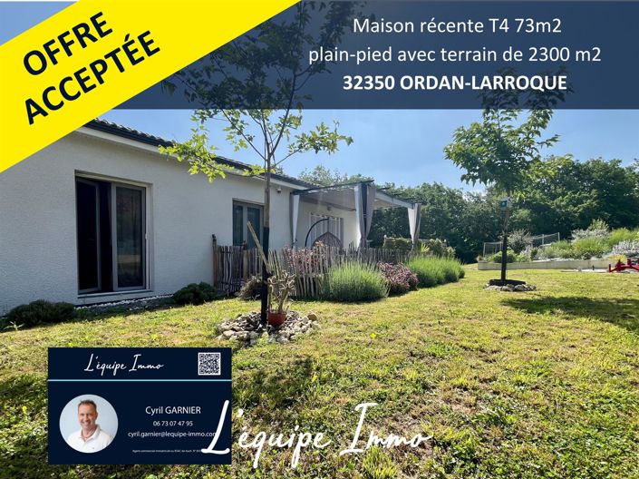 Only at lequipe-immo. Located in a village with a school to the west of Auch and 10 minutes from the town center, come and discover this 73m2 single-story house built in 2022. It consists of a living space with an equipped kitchen and a lounge opening onto a terrace. A corridor leads to 3 bedrooms, a separate toilet and a bathroom with a second toilet. You can also enjoy air conditioning for the hottest days. You will be charmed by the outdoor environment of more than 2300 m2 which is peaceful and wooded in the surroundings. Plus: House under ten-year guarantee. Possibility of extension. A property to visit without delay