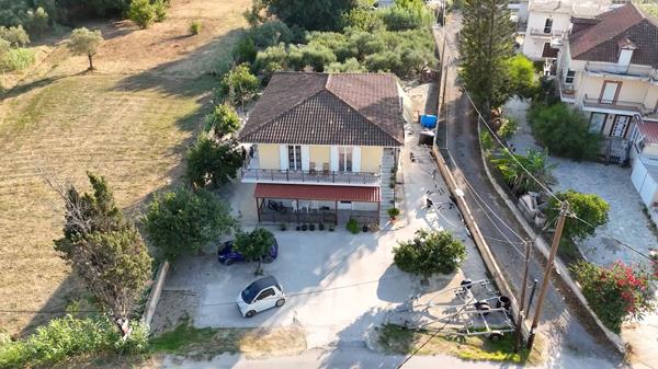 The property is located right next to an asphalt road, ensuring easy access all year round. The building is divided into two independent apartments, with a separate entrance to the upper floor via an external staircase, making it ideal for both private residence and investment purposes through rental. Each floor offers three spacious bedrooms, two bathrooms, a comfortable kitchen, a bright living room, a functional hall, and balconies, combining comfort and practicality. At the back of the plot, there is a storage room and a cultivated olive grove, giving the property a distinct Mediterranean character. This is a rare opportunity in a location that combines peace and privacy with immediate access to tourist centers, beaches, and amenities.
