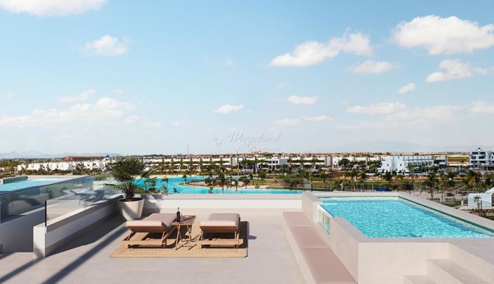 Olivo 19 is a beautiful apartment project within the Santa Rosalia Lake and Life Resort. The resort is located on the coast in the Murcia region of the Costa Cálida. It is only 4 kilometers from the water and the popular town of Los Alcázares, and neighbors the well-known Mar Menor Golf Resort. Central location: short distance to beach activities, shopping, culture, and dining.