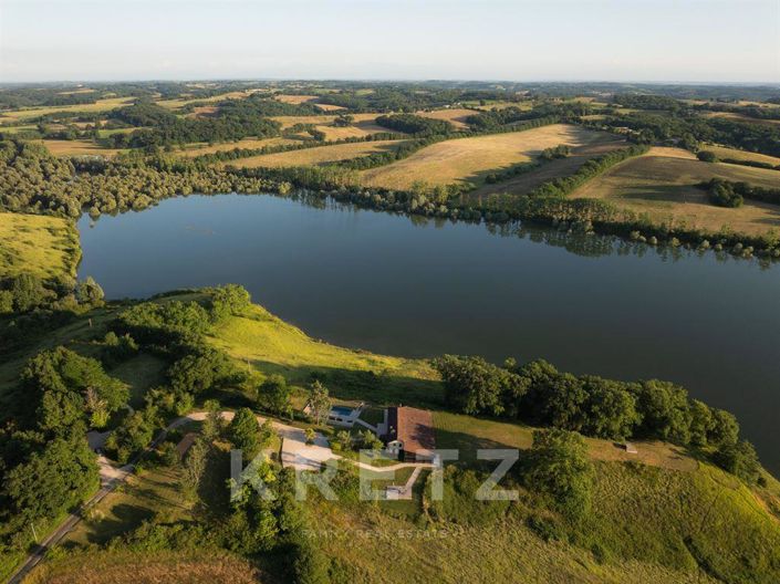 In the land of Armagnac, on the land of D'Artagnan, in an exceptional environment, old farmhouse renovated in a contemporary style, 9 rooms, 235m2 in the heart of a 22-hectare lakeside estate, with infinity pool, petanque court and several terraces with views.