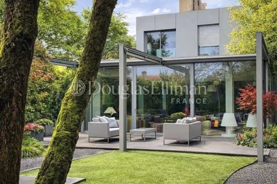 Exclusive Douglas Elliman is pleased to present this sumptuous contemporary villa of around 300 m2 and its outbuilding converted into a 50 m2 2-bedroom apartment located in Bordeaux Caudéran in the Orangers district, built by an architect on a 1,256 m2 plot, revealing a sober, elegant character. The raw, natural materials blend beautifully, creating a relaxing environment that contrasts with the lush, harmonious garden.