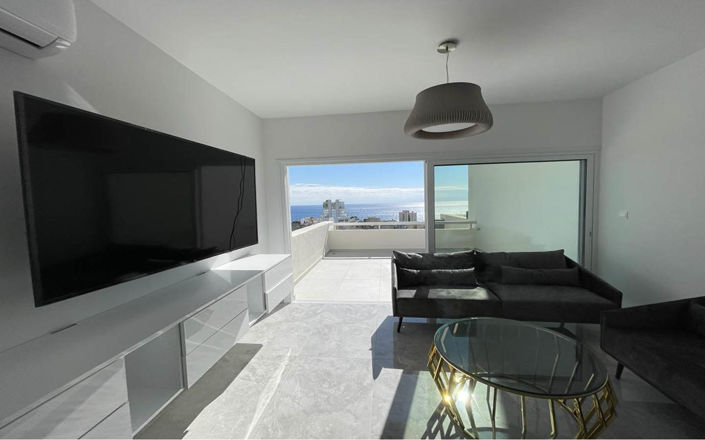 This luxurious three-bedroom penthouse with stunning views of the endless Mediterranean Sea is located in one of Limassol's most prestigious neighborhoods—Agios Tychonas. Fully renovated and thoughtfully designed for maximum comfort and coziness, the apartment boasts a modern, light-filled interior with a stylish minimalist design, creating an atmosphere of luxurious ease and harmony. Large windows bathe the space in the warm Cyprus sunlight, offering breathtaking panoramic views of the coast.