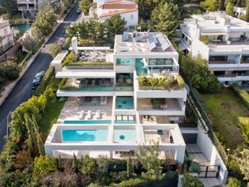 Designed by renowned architects and completed to the highest standards, the penthouse unfolds across multiple levels that balance privacy, calmness and generous scale. It offers four en-suite bedrooms including an impressive master suite with walk-in closet, a private office, an independent fully equipped kitchen with outdoor dining, and a dedicated wellness area with gym, hammam and jacuzzi. Additional amenities include a discreet two-bedroom staff apartment, secondary kitchen, extensive laundry and storage areas, basement facilities, and underground parking for three large vehicles.