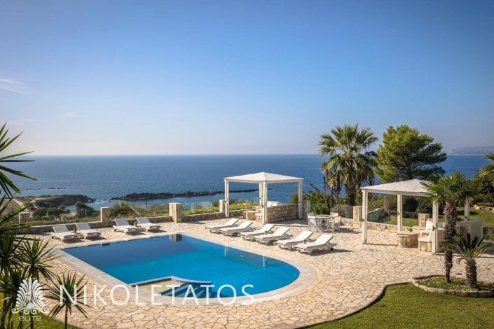 The architectural approach is defined by clean lines and understated sophistication, prioritizing privacy, functionality, and a harmonious relationship with the surrounding landscape. Outdoor spaces are highlighted by a 70 sq.m. swimming pool, landscaped gardens, and thoughtfully designed terraces, creating a serene and elevated setting with open views across the Ionian Sea and its renowned sunsets.