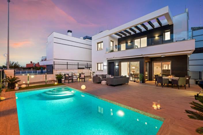 Villamartín, in Orihuela Costa, is known for its golf courses and lively atmosphere. A wide selection of restaurants, shops, and entertainment options are nearby. The short distance to beautiful sandy beaches and easy access to the airport make this location ideal.