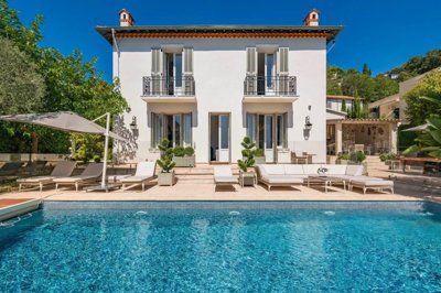 Perfectly positioned between Nice and Monaco, this beautifully renovated villa offers around 280 m² of elegant living space and enjoys captivating views over the Mediterranean Sea and the historic village of Èze, with its landmark church just minutes away. Designed in a refined contemporary style, the property combines modern comfort with a serene setting, making it an exceptional family retreat in one of the Riviera’s most coveted locations.