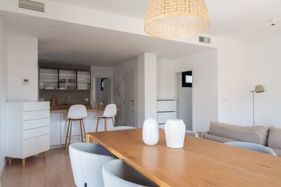 The layout has been thoughtfully designed for modern living and features two spacious bedrooms, two generously sized bathrooms, and a fully equipped designer kitchen with high-end appliances and a central island that integrates seamlessly with the living area. From here, there is direct access to a terrace with open views, ideal for enjoying Málaga’s climate year-round.
