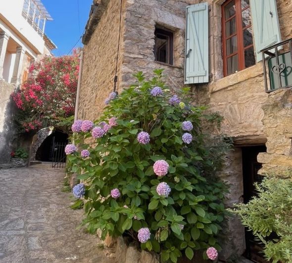 The house is located in the medieval hilltop village of Caussiniojouls, which sits between the Mediterranean coast to the south and the dramatic Montagnes Noires to the north. The village is surrounded by vineyards producing the delicious wines of the Faugeres appellation.