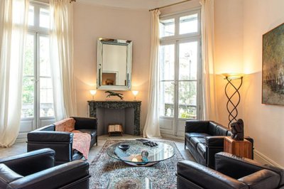 In the heart of Rue Foch, in a beautiful bourgeois building, this superb reception apartment offers over 200 m² of living space, arranged around beautiful reception rooms. Upon entering, you'll be captivated by the elegance of the space, the meticulous decor, the high-quality fittings, and the absolutely remarkable level of finish. The apartment features four beautiful reception rooms arranged in a star-shaped arrangement around the entrance hall. With generous volumes, high ceilings, floor-to-ceiling bars, and marble fireplaces, the whole space is absolutely splendid. The contemporary and fully equipped kitchen, which includes a utility room and laundry room, makes it easy and highly functional. On the sleeping side, there's a superb master suite with a large bathroom and balcony overlooking the building's inner courtyard. Upstairs, there are two additional, beautifully appointed bedrooms and a shower room. This apartment is perfect for fully experiencing this sought-after part of Montpellier. The level of finish and service is rare! The apartment is sold with a beautiful cellar in perfect condition in the basement and the possibility of parking your vehicle at the foot of the building, a true luxury in the city center! File on request