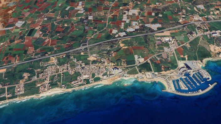 The plot has a total area of 6,900 sq.m. and features a regular shape. It enjoys panoramic sea views and is surrounded by charming holiday villas. The property is conveniently located near the new Ayia Napa Marina, WaterWorld Waterpark, and beautiful sandy beaches.